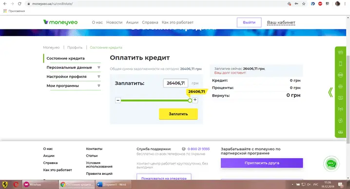 Как то такЗайдіть у ваш кабінет і стан кредиту там буде видно в мене також так само