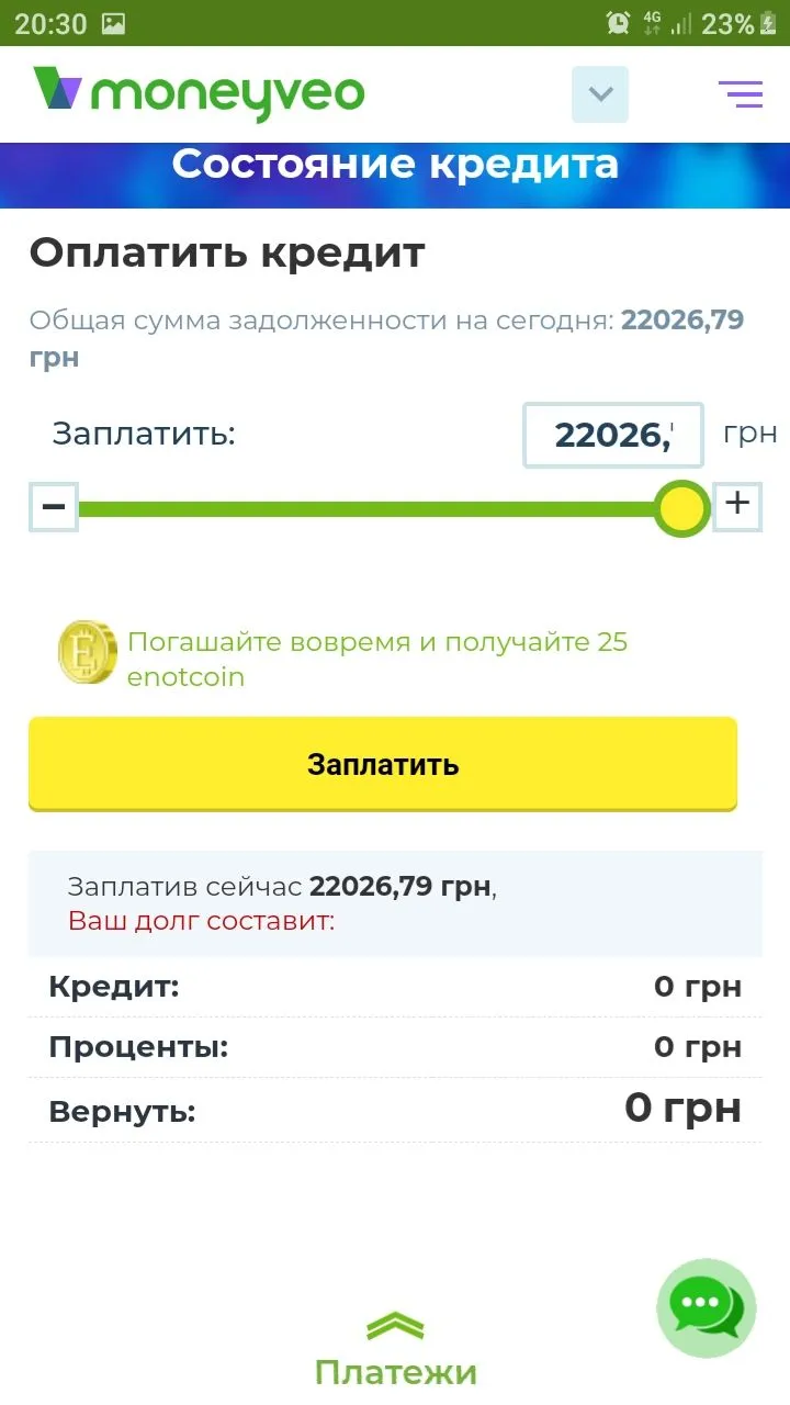 Ага...сасамба им а не 22кНа сайте показывается сколько вы будете должны в итоге, если внесете данную сумму (22к) - 0.
