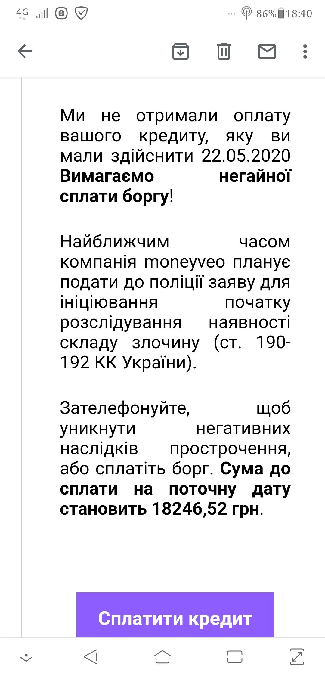 Было тело 5000 грн, пролонгаций было на сумму 9038 грн. С момента карантина вышел на просрочку в две недели. Первую неделю звонили редко и культурно напоминали, со второй начался просто трешь: звонки родителям при чем не только моим но и жены, достали откуда-то номер ее бабушки. Звонили через каждые пол часа. Ок, родителям ситуацию объяснил, они трубку не брали, но 20-30 звонков за день все-таки напрягают... В итоге позвонил в Мани, сказал, давайте решать сразу и по факту, предложили закрыть за 24 часа за 5500 грн (тело 5000). Согласился...