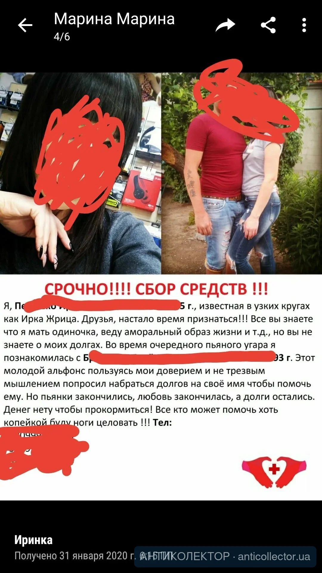 Сколько я тут всего уже перечитала то пишут что очень помогает звонок на 1545, я вчера пыталась туда дозвониться но было все время занято. Мне вчера прислали коллаж, угрозы и так далее но даже не написали от кого они!