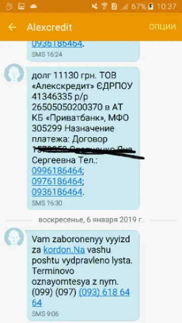 десь з 20 чисел листопада,доставав ?Такоє вмене прострочка по мфо більше пів року по різних,по накатаній працюють,коли ти нах посилаєш і вони розуміють що папа мама сестра брат сусіди робота буде знати і це не діє то все.Да смс діма якісь всуд подавав і фома дзвонив ,без язикий з хуйом в роті.