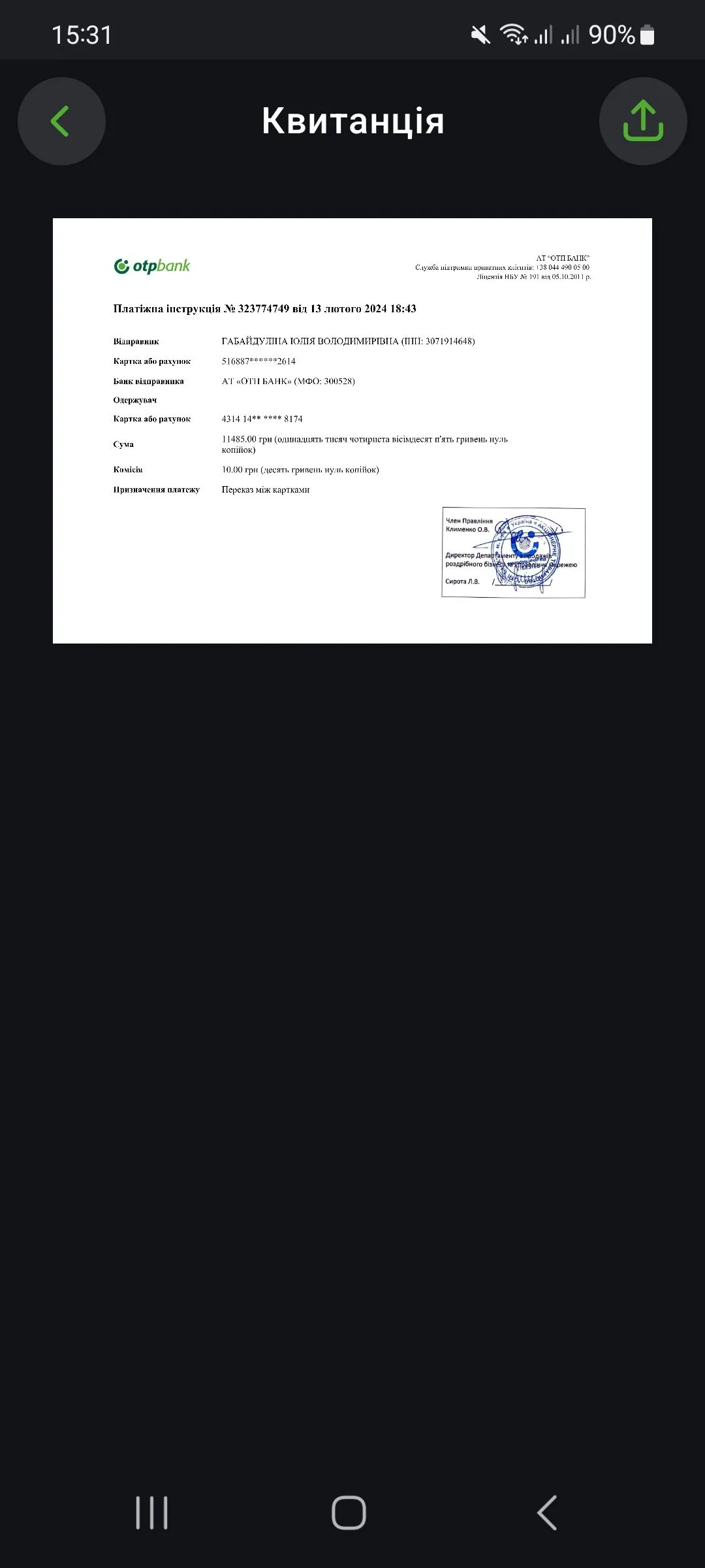 Вот что нашла, разные карты были у них я так поняла...Але ж кудись Юлія платила і борг закрила