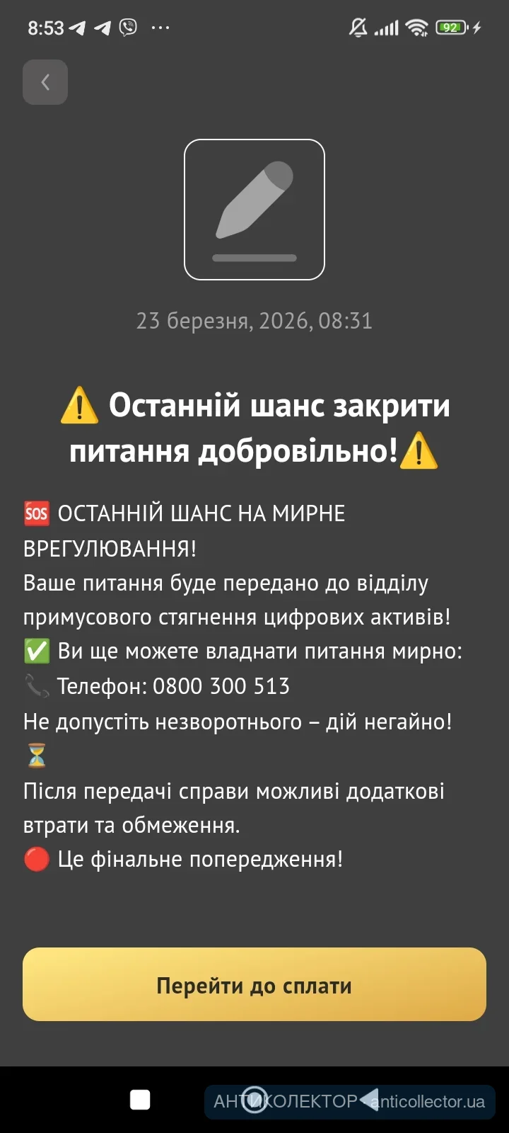 Взагалі, "останній шанс" - це стара фішка від кредитпромінцесту. Вони мені про цей шанс десь трохи менше року писали, потім зникли з горизонту (щоправда, тоді війна почалась і усі зникли на деякий період). Недивно, тому що біти - криптомутована форма життя євошей.
