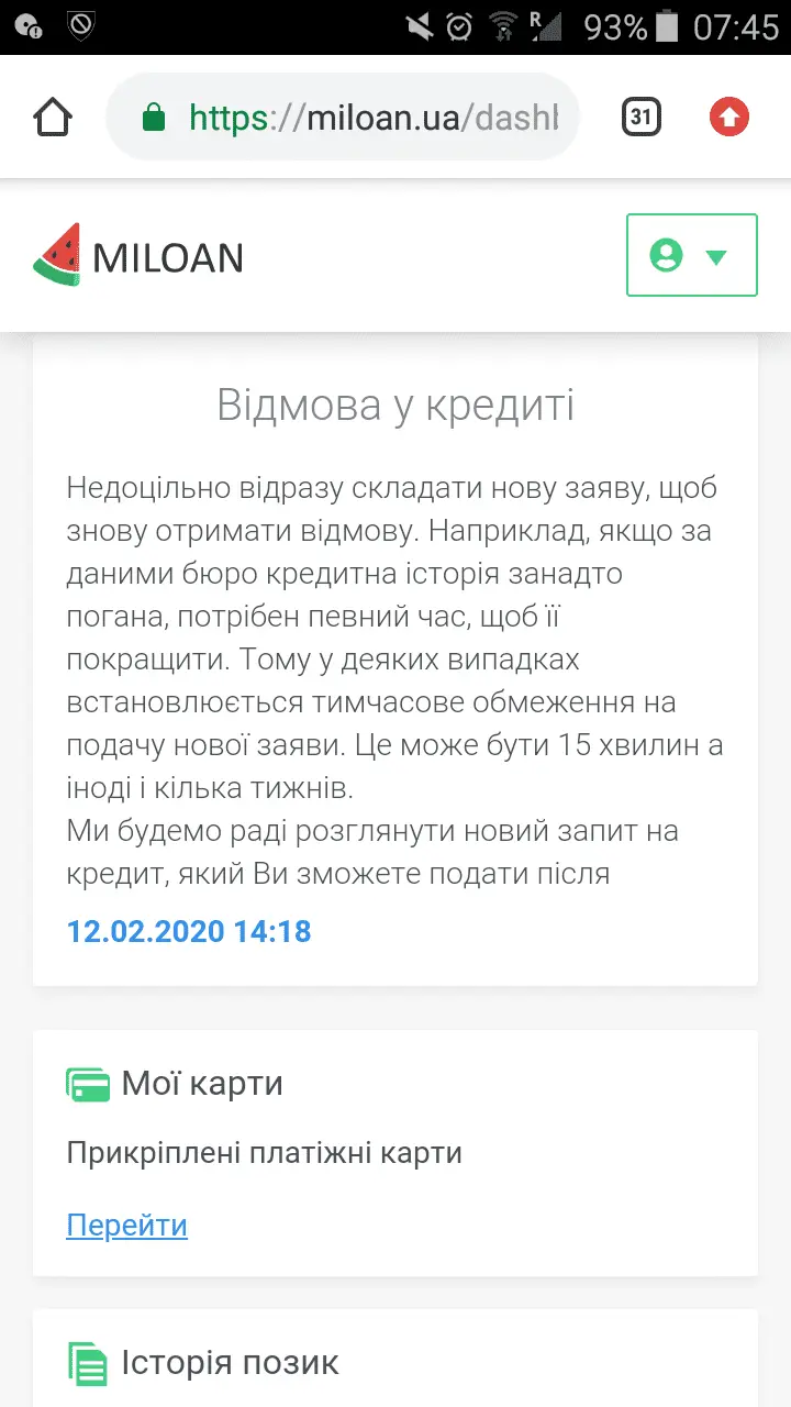 Мілоан! У кабінеті немає повної суми до погашення
