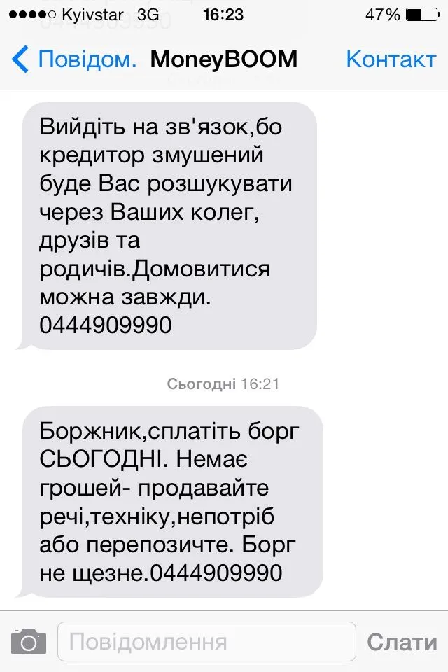 Мне наяривает манибум уже пол часа с разных номеров 044. Один раз подняла,она давай общаться,назвала мне общую сумму моих долгов,фио отца и дату рождения.это ж будет ему звонить.блин не хочется,чтоб называла сумму общую моих долгов.родаки думают,что там один на 10 тыс. Они на работу звонят?? Просрочка 18 дней,тело 3100, уже на 7500. К чему с ними готовиться? Они у меня сейчас самые активные