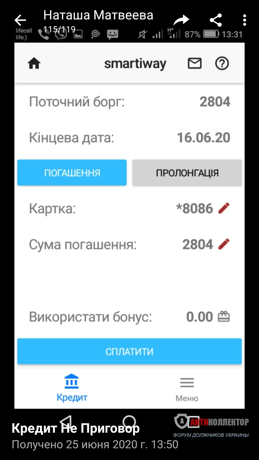 У меня была просрочка по Смартивей. Где то 3 месяца ( кредит 2000, пролонгациями заплатила почти 9000). Требовали ещё 2804. Конечно, звонили и писали все подряд по тел книге. В общем, я написала обращение в НБУ, расписала ситуацию. И...о, чудо...сумма из 2804 превратилась волшебным образом в 269. Так что на своем опыте убедилась- помощь есть. Скрины из ЛК прилагаю