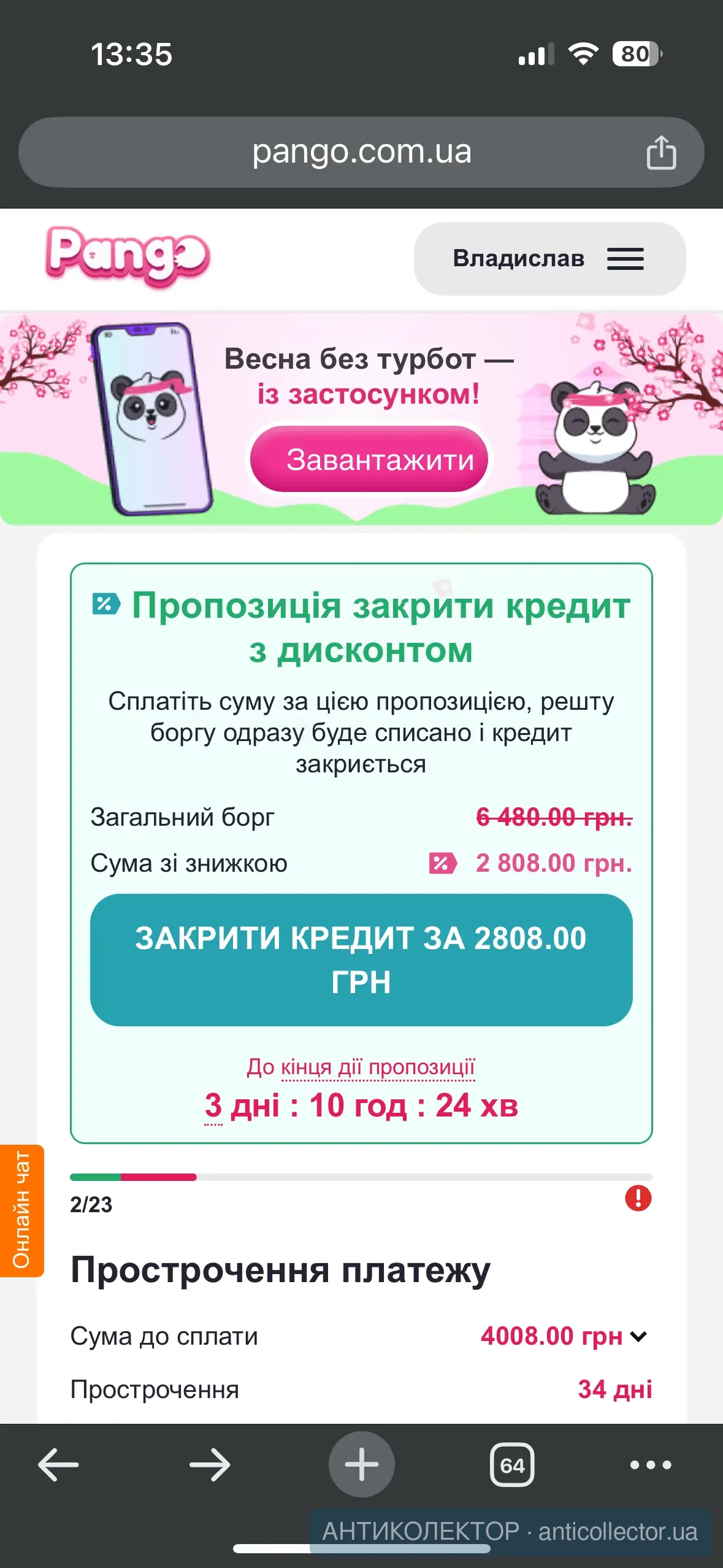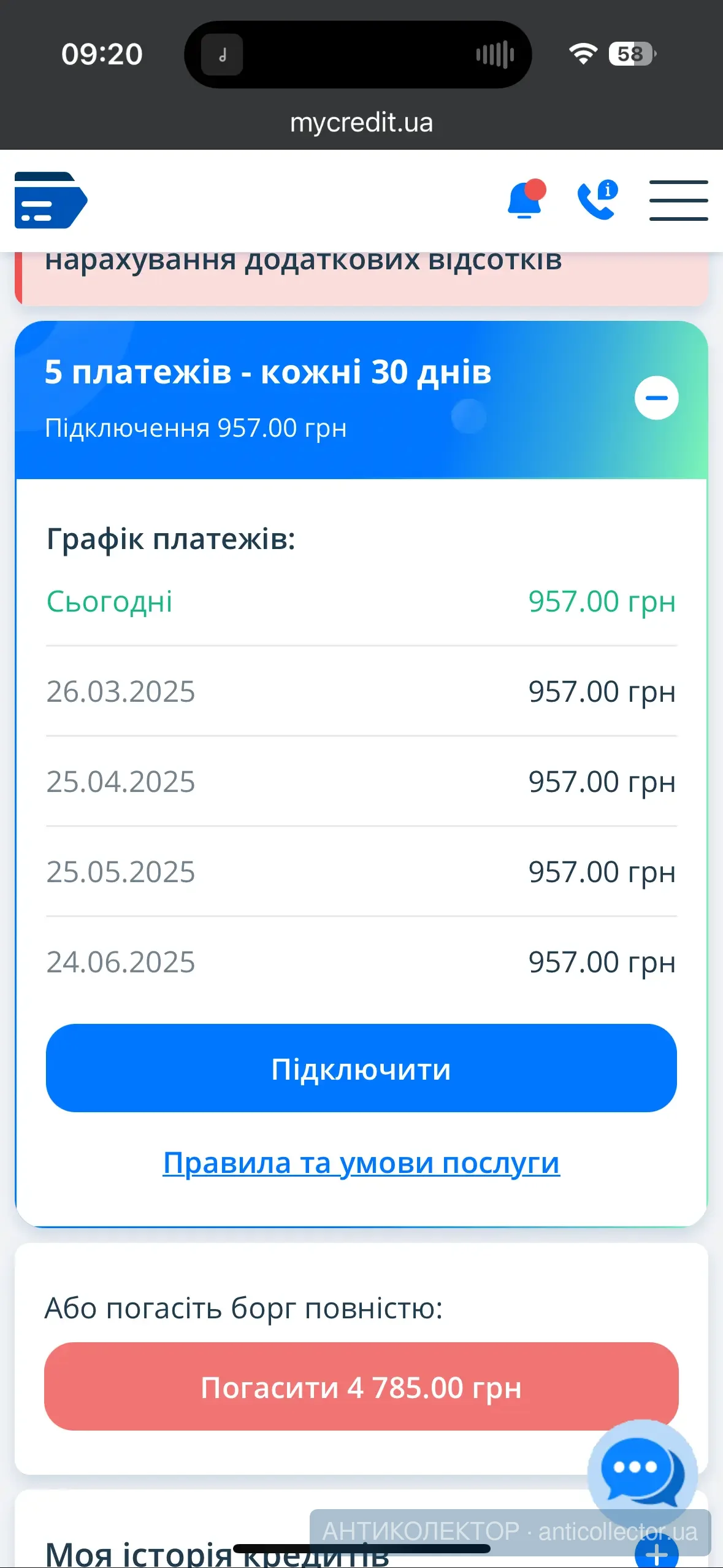 Десь через 40 днів після початку прострочення. На всю нараховану суму. На 6 платежівНа сколько платежей? И когда примерно предложили?
