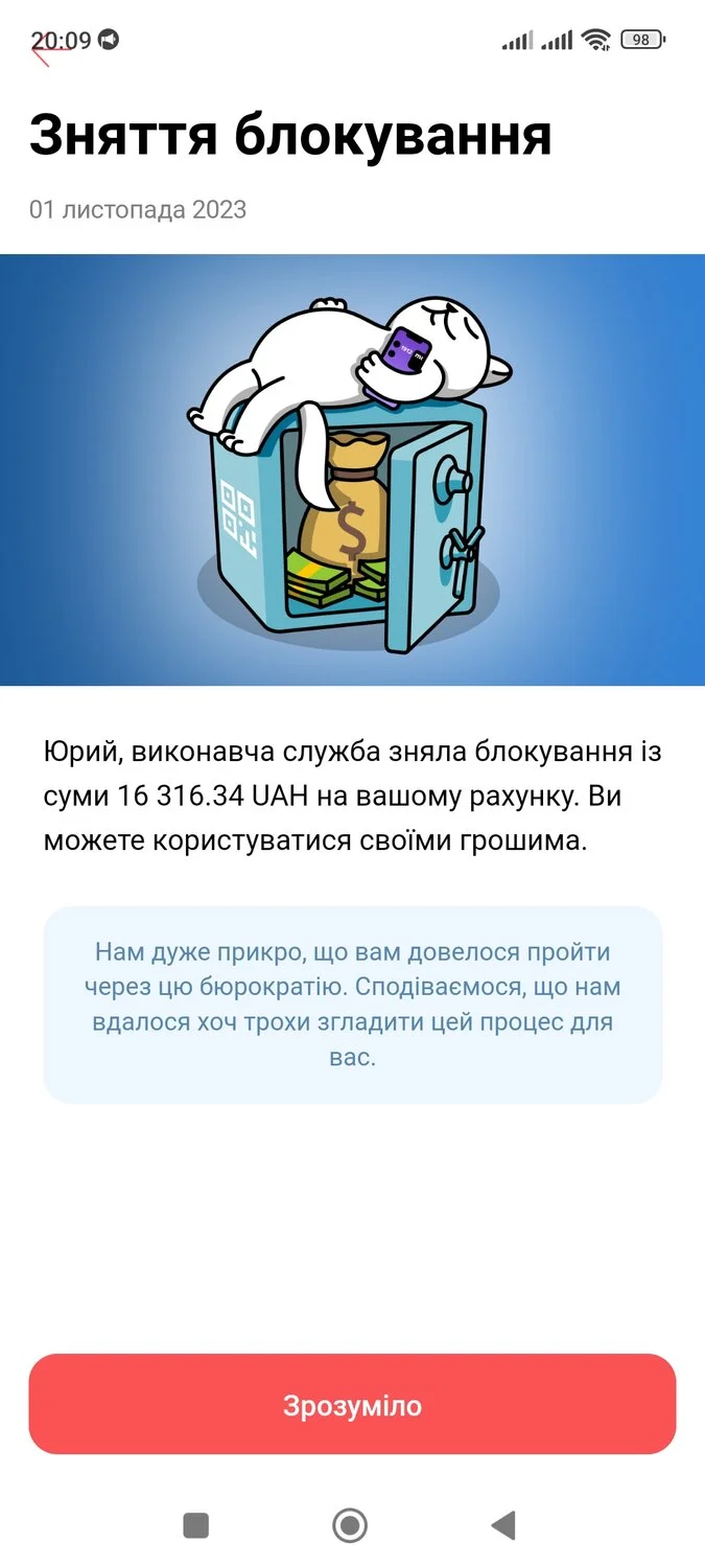 , а ось розблокували рахунки першими. Це дуже приємно.