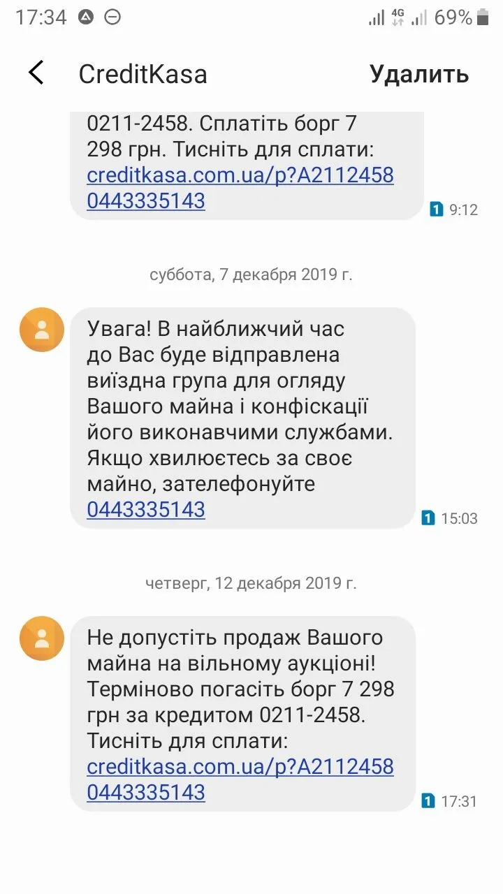 Я Вам так скажу, вся моя історія почалась з цих уродів, але, як виявилось, вони взагалі тряпки справжні. Нічого не буде і переживати не слід. Їхні погрози блеф, листи-макулатура, смс взагалі брєдотіна. Місяць-два псіхоза і в них це проходить, чим більше берете трубку і намагаєтесь адекватно спілкуватись, тим більше виносять мозок. Припиняється тільки тоді, коли конкретно послані або мороз -140, мої знайомі вже в курсі, бо це все вже пройдено, не плачу 5 місяців. Для себе вирішила, ні однієї гривні цим ушльопкам платити не буду, ні тіла, ні без тіла, взагалі нічого, бо по тупості своїй накормила з тіла 4000 пролангаціями на 22000, бо боялась, що хтось знати бути. В Нацкомфін писала, нічого..., знайомий слідчий сказав, що з заяв в принципі нічого не буде. Менше спілкуйтесь, не беріть трубку, а головне повний спокій і рівновага. Навчіться забивати і тримайтесь!!!!