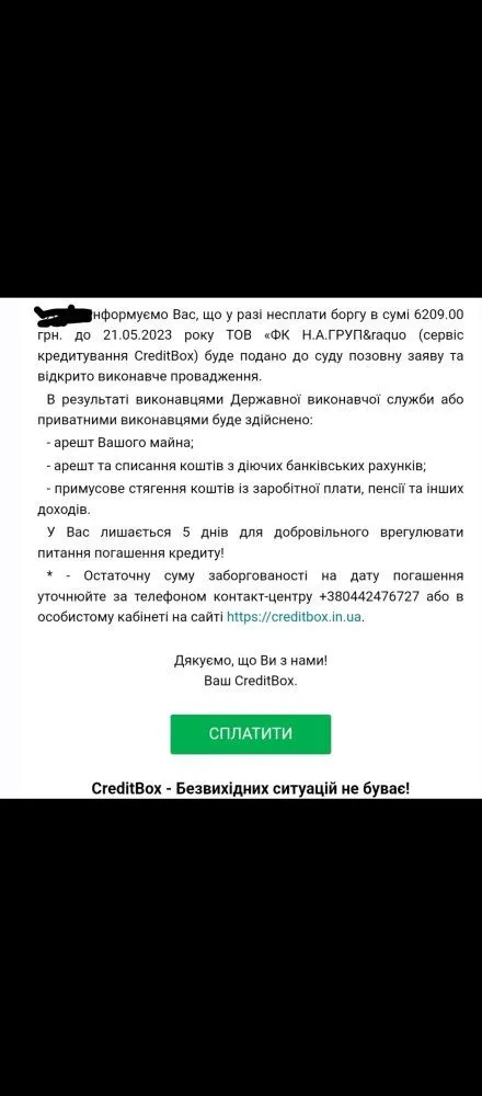 Отаке нині прийшло, тіло 18000...15000 запалатила... хочуть ще 37000...просрочка 2 місяці...шо думаєте?