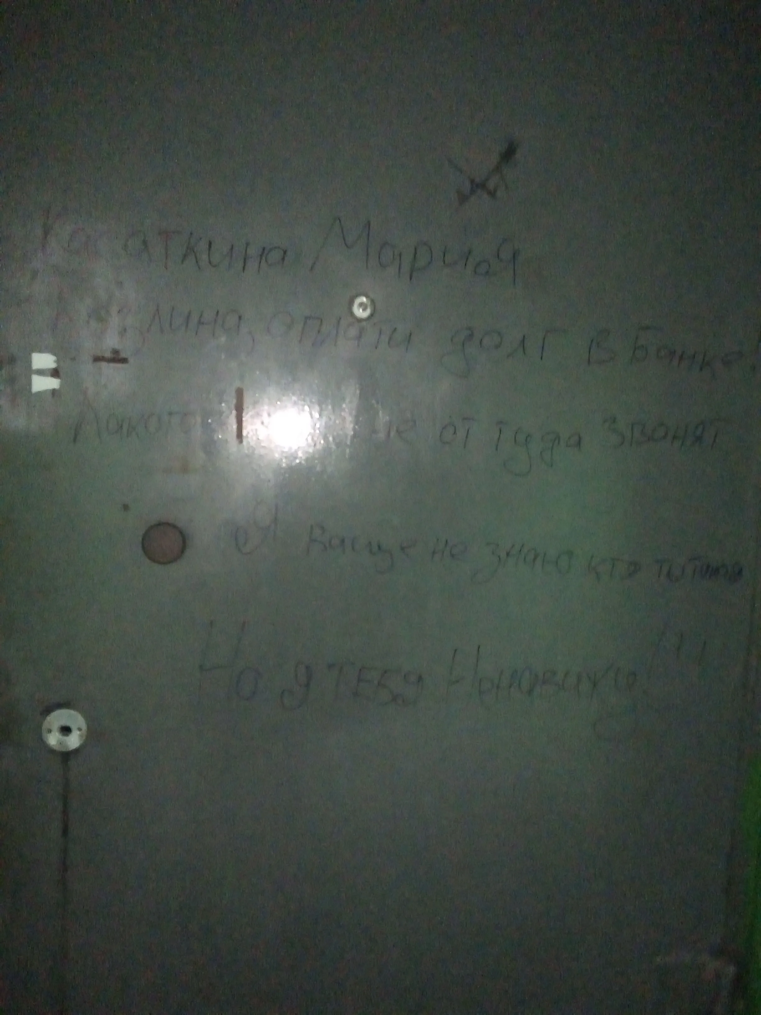 А эта твapb написала мне на двери это
