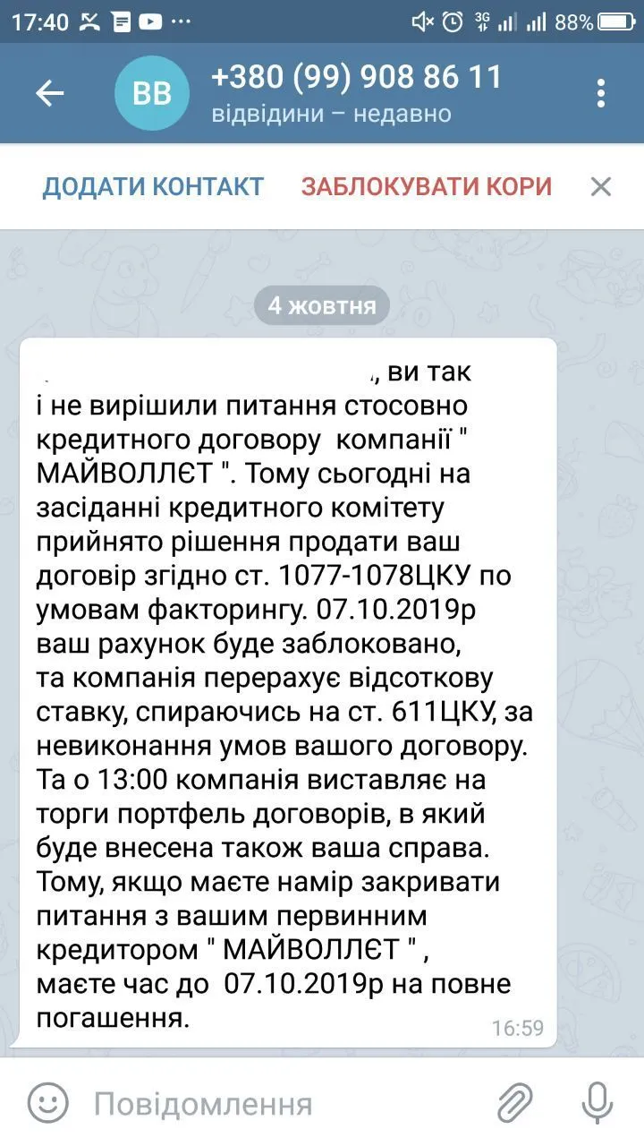 Написали что 7 октября продают мой ДОГОВОР(!) . чего ждать от них . пролонгаций не делала, тело 3000 грн. сверху уже почти 6000 насчитали. Готова была закрыть на 2 -3 день просрочки , но они мне пеню 1500 грн насчитали....