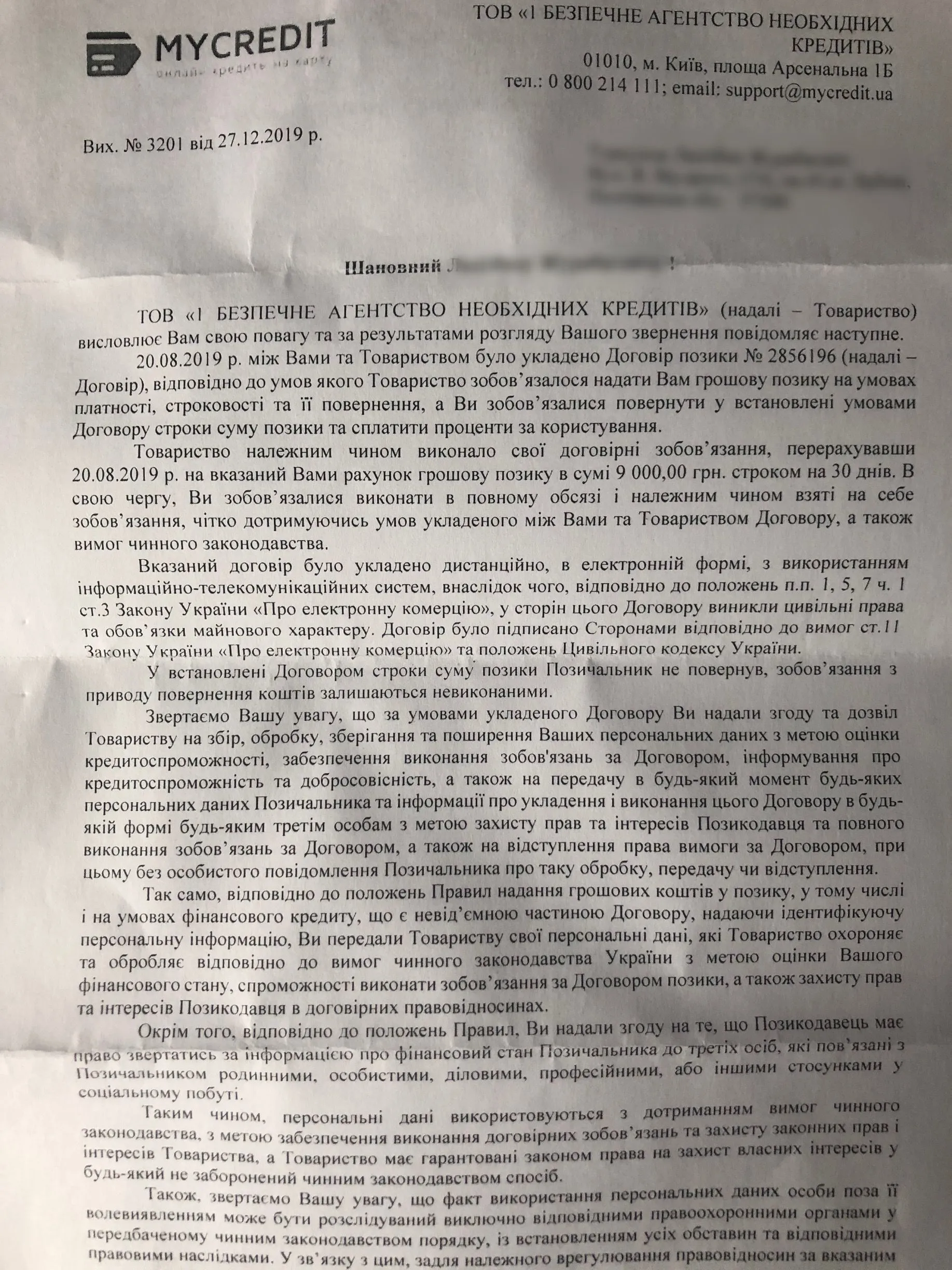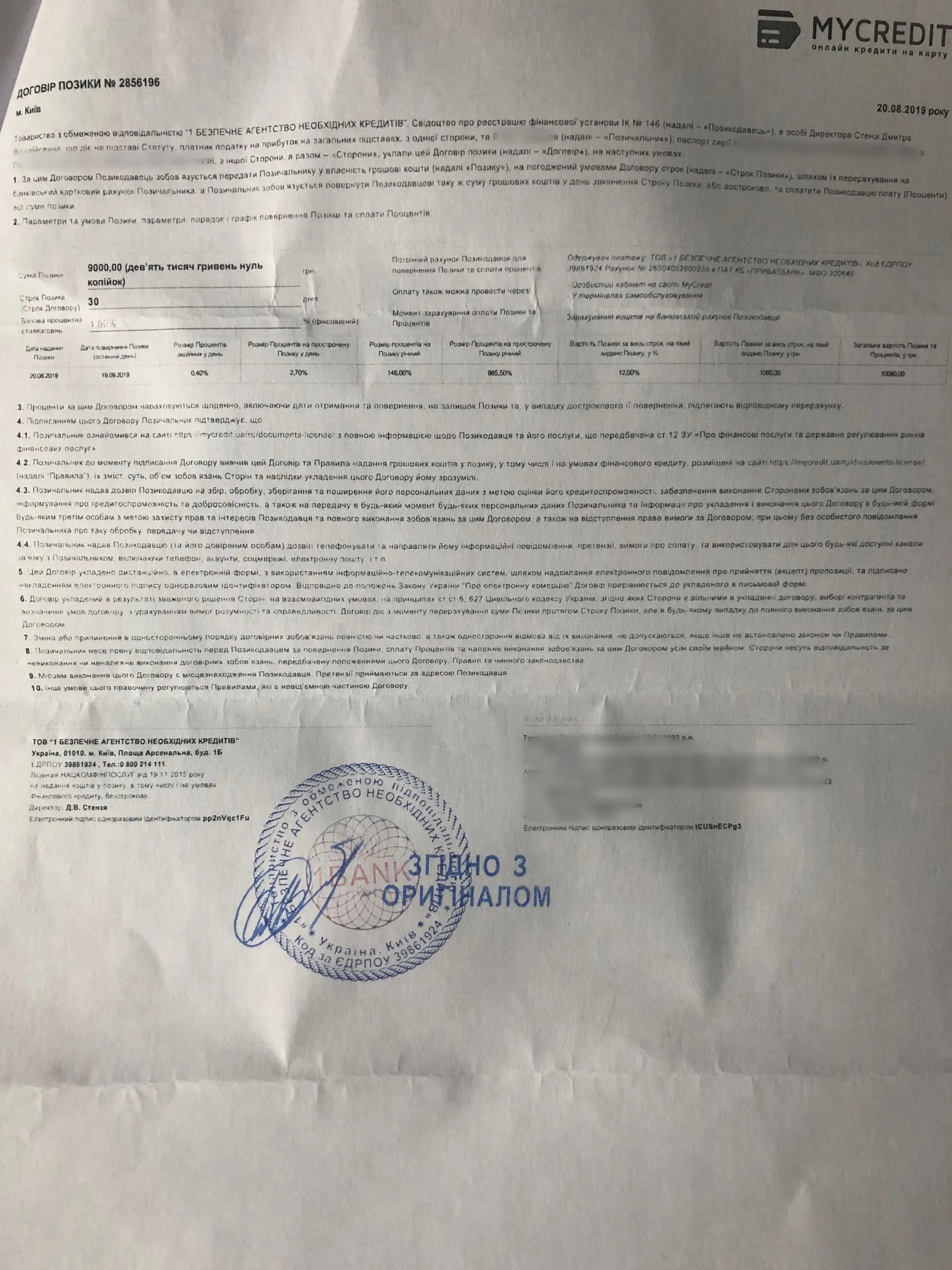 Mycredit и договор
