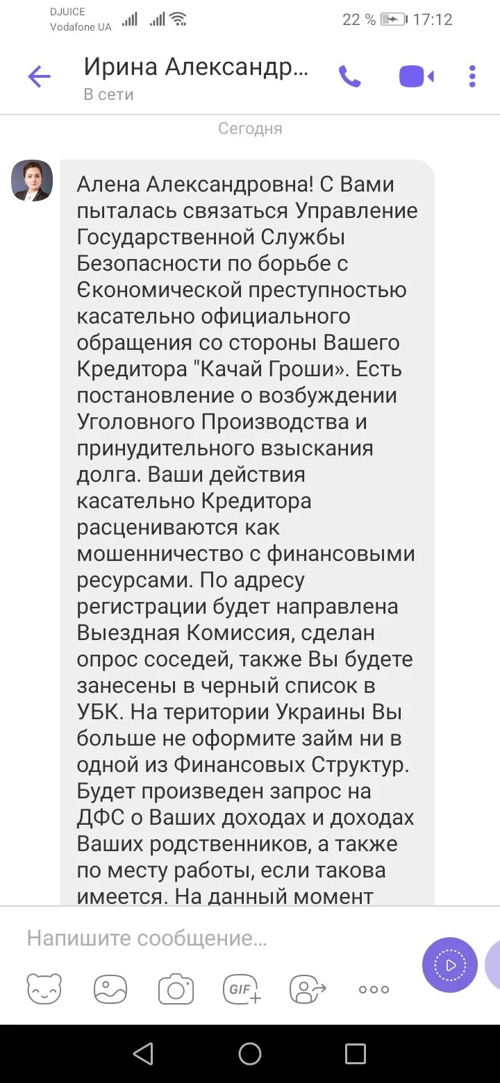 Всім привіт сьогодні качай гроші прислали на вайбер, що робити допоможіть? Просто не розумію це вони знову лякають? В кого таке було?