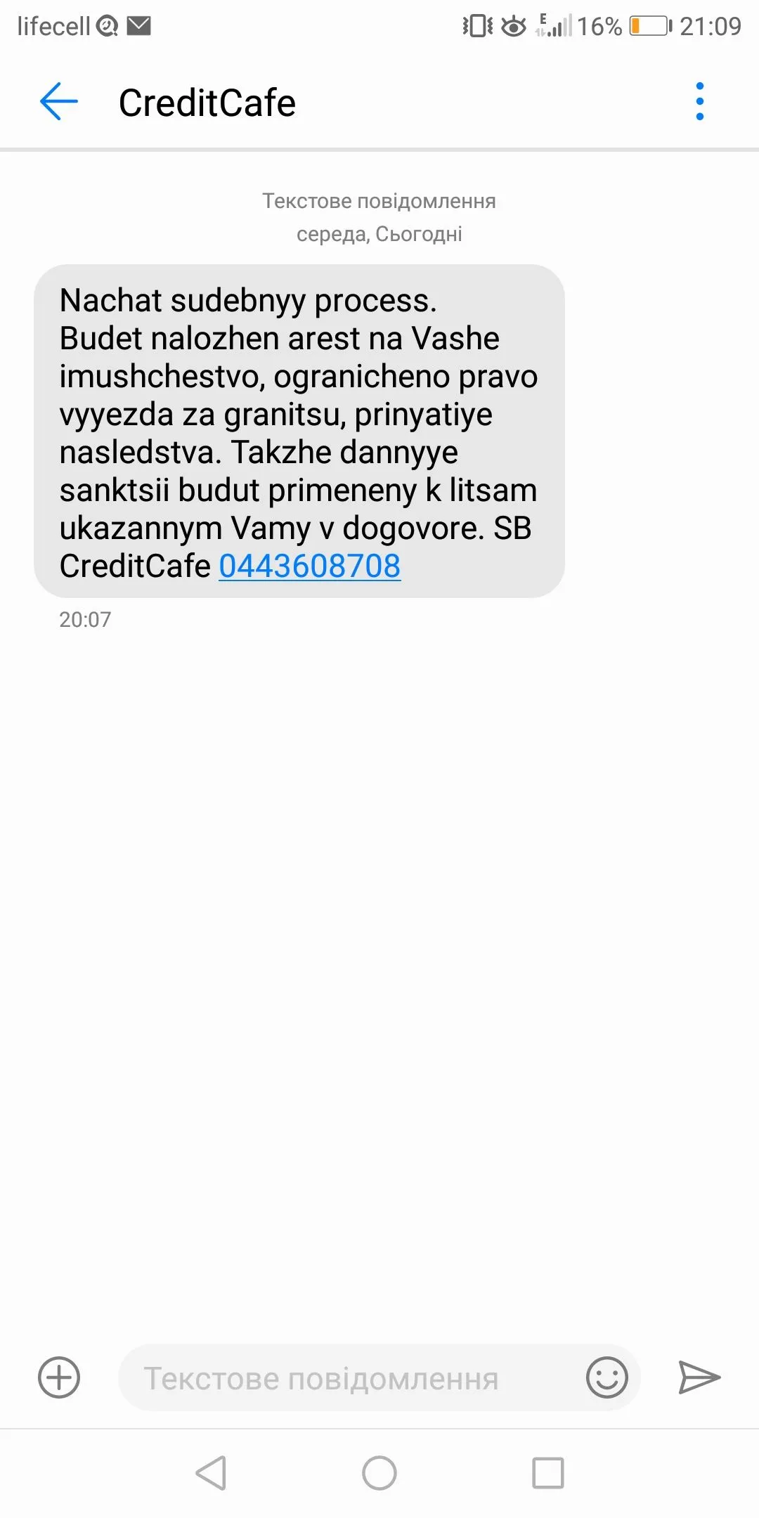 Добрый день. У меня просрочка 90 дней в Кредит кафе. Все время были только смс и звонки. Но последнюю неделю мне на вайбер начал писать"Майор", с угрозами и рассправой через моего ребенка имя тоже назвал дочери. Я его игнорировала, так эта скотиеа позвонила , внимание, маме моей подружке и сказал, что ее дрчь попала в дтп и лежит в реанимации и нужна срочно кровь!!! Подружка мне натыкала таких матов, таких прокленов, а потом он на след.день нашел моего двоюродного брата тёщу, которая живет ща 600км. от меня и я ее видела всего раз, тоже сказал что дочь разбилась, женщина с серд.приступом! И так несколько дней! Вынужленна была от него поднять трубку, т.к. написал, что это начало. Но я с ним договорилась сделать оплату за тело 4тыс. Штрафы будут списаны. Сегодня иду платить. Вот на что они способны! И нет на них управы! Людей доводят до гибели!