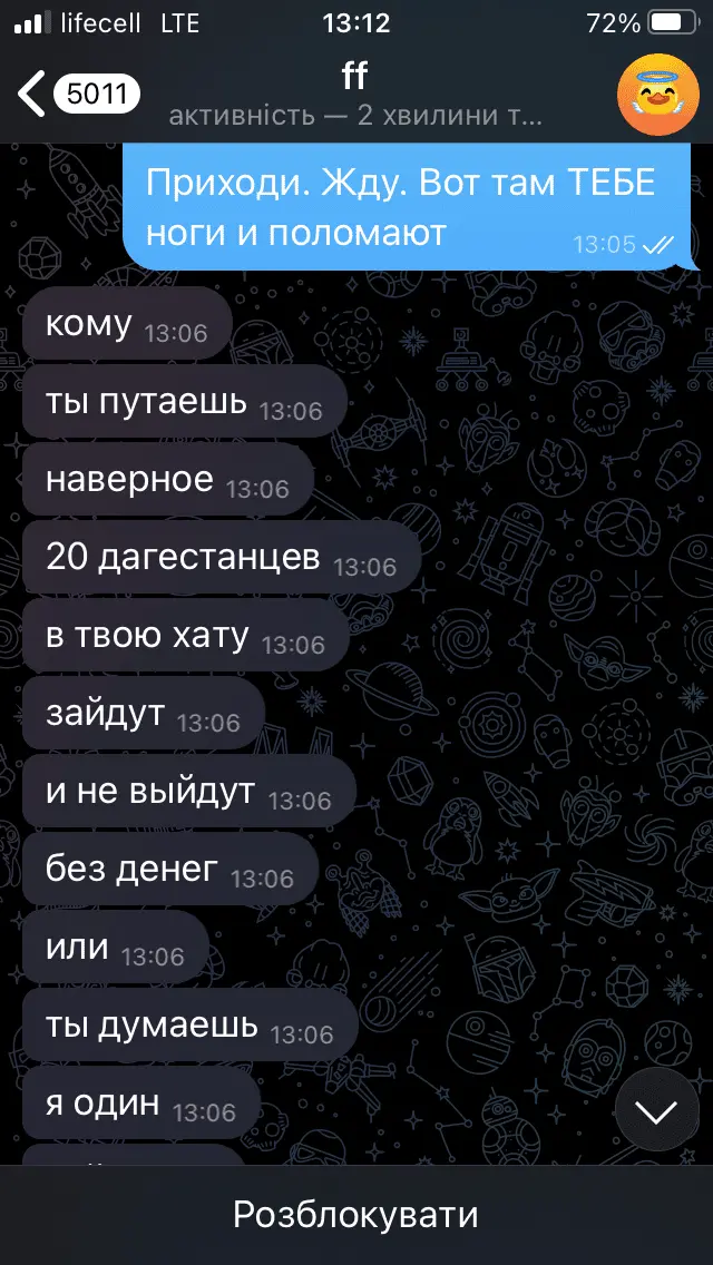 Добрый вечер. А вы не хотите написать заявление в Полицию или Кибер Полицию, прямо на их официальном сайте. Они должны его принять и рассмотреть. Тем более у вас доказательство прямых угроз-это уголовная статья. Я так сдеала, мне помогло