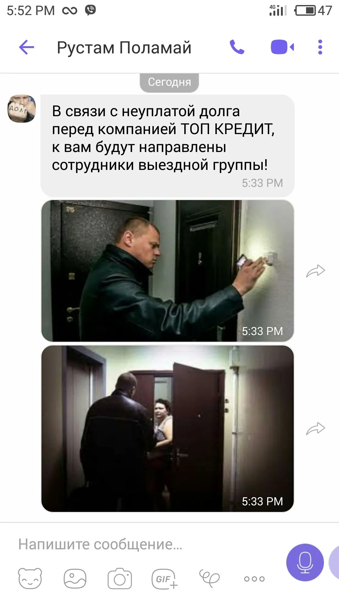 Мені прислали фото з двома колекторами і сидящим на стільчику побитим чоловіком і написали що зроблять мене інвалідом.