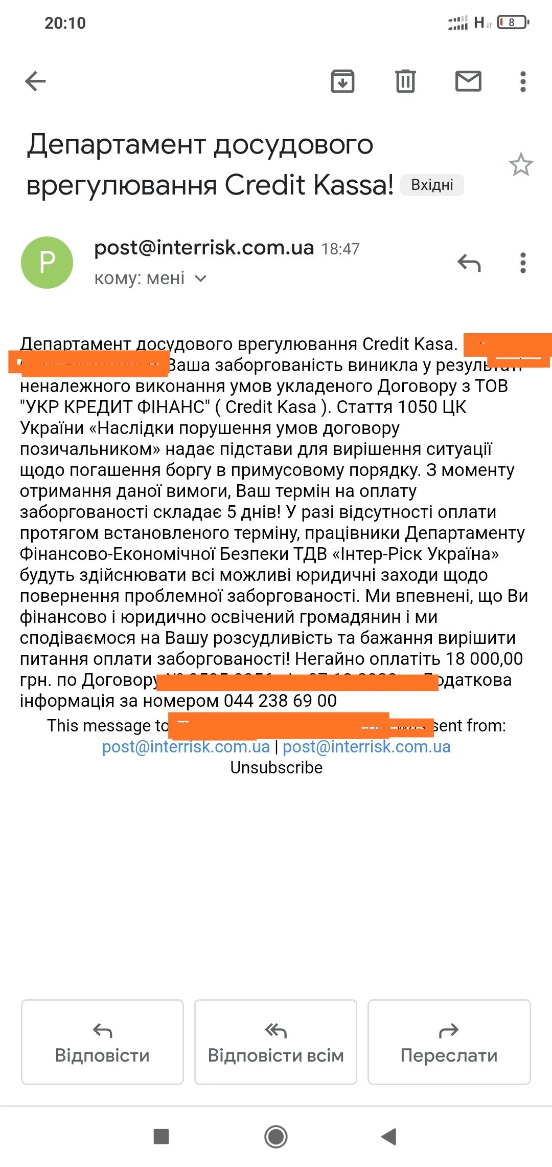 Пока тишина . Только мне телефон обрывают. Но прога спасает. Долг 18 к. И плюс проценты. Но я 3 раза пролонгацию оформляла по 5 к. Так что большк им платить не могу и не собираюсь пока что. Родным скажу что мошенники. И еще вопрос на засыпку: как часто и когда они начинают родню обзванивать? И что говорят?