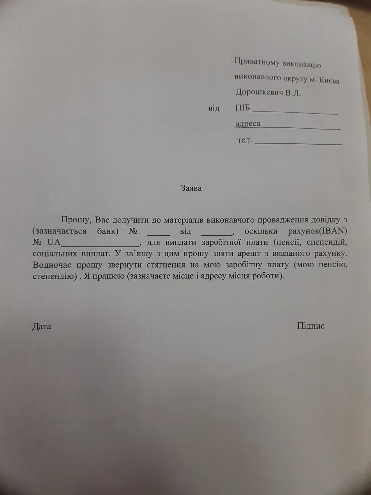 Также Дорошкевич присылает заяву см. Файл на снятие ареста с Пенсионных и Зарплатные счетов с отчислением 20%. И требует справку с банка о том что счёт действительно зарплатные. Кто то слал ей такие документы, она сняла арест. Отдает банк 80% от зарплаты. Бо я что то пишу ей после этого с вопросом, когда разблокируют счета, ответа нет.