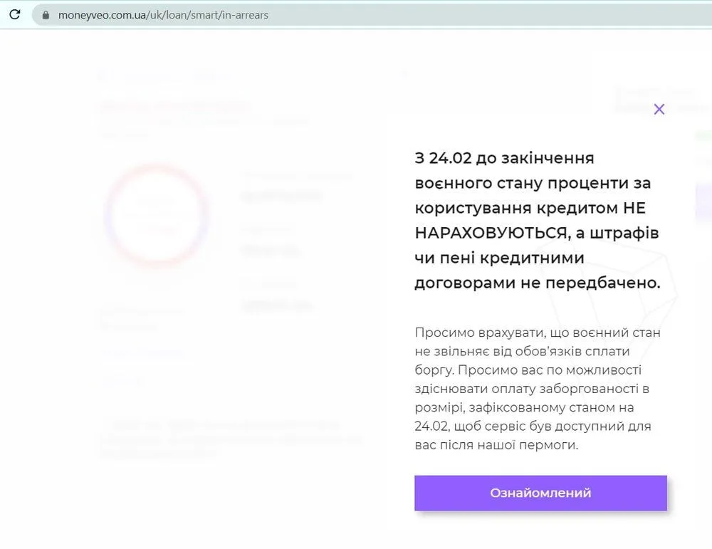 Нараховані проценти компанія зменшує в односторонньому порядку, враховуючи воєнний стан. Тобто процентна ставка додатково включатиме в себе знижку за промокодом та знижку в залежності від Рівня лояльності. Про Рівень лояльності та розмір актуальної знижки можна дізнатися в Особистому кабінеті.
