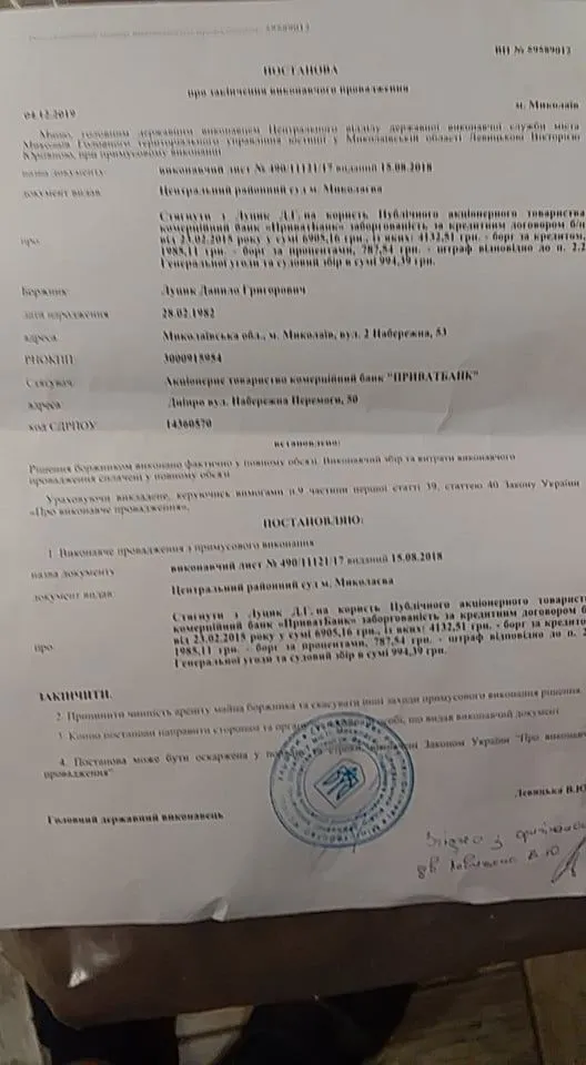 Уважаемый админ я с Вами не согласен. Может Приват так делает, но это не законно. Был суд у меня с Дельтой. Автокредит. Доплачивал кредит через государственную исполнительную службу по решению суда. Доплатил 2 года назад. Продал авто и забыл. В 2019 году появляются Вердикт Капитал и требуют с меня 30000 грн, мол проценты пока я платил через ИП, накапали проценты, а они перекупили договор. Я по телефону объясняю ситуацию и предлагаю документы о погашении им предоставить. Мне говорят нам поx. Вы нам должны. Через 6 мес. подают на меня в суд и тут облом. Решение суда -отказать Вердикт Капиталу, так как исполнительное производство закрыто и долг погашен в полном объеме. Те звонят и все равно требуют деньги. Я их посылаю нах. В сентябре делают ИНН, пан Горай и исполнитель Малкова. ИП через суд снёс через месяц после постановы, а суд о признании ИНН что не подлежит исполнению скоро будет. Вот так работают эти падлы. Но суть в том , что начисление будь каких штрафов,процентов и ТД и ТП после закрытия ИП по решению суда незаконны. В суде Вы это докажите без проблем. Удачи Всем. Не бойтесь судов, это спасение для нас и пишите больше жалоб на нотариусов и исполнителей.