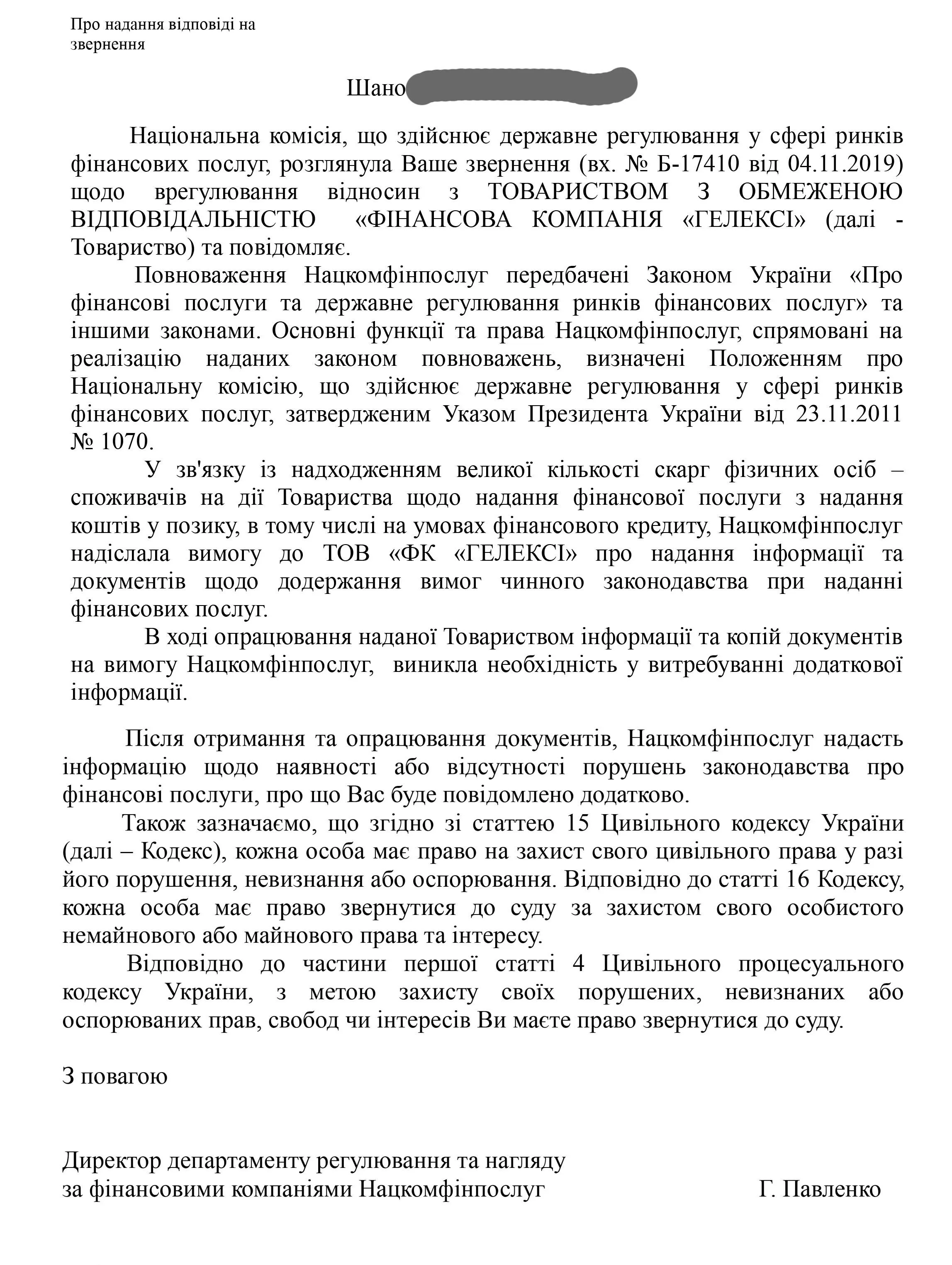 Сорі, не кашинський а ГелексіЛистав на днях сайт нацкомфіну і в розділі Прийнятих рішень натрапив на цікавий і досить свіжий документ по Гелексі - РОЗПОРЯДЖЕННЯ № 2179 від 29.10.2019. Вирішив скористатися нагодою і написав їм листа, але в той день мій борг продали ЄАПБ. Тепер питання бувалим: чи варто написати їм запрос на свої документи по кредиту з документами про переуступку, та керуючись розпорядженням і наданими документами вимагати від ЄАПБ списання боргу, оскільки він був по суті "липовий"? Тут якщо не реституцією, то списанням має обійтися точно. Мав там 1 чи 2 пролонгації.