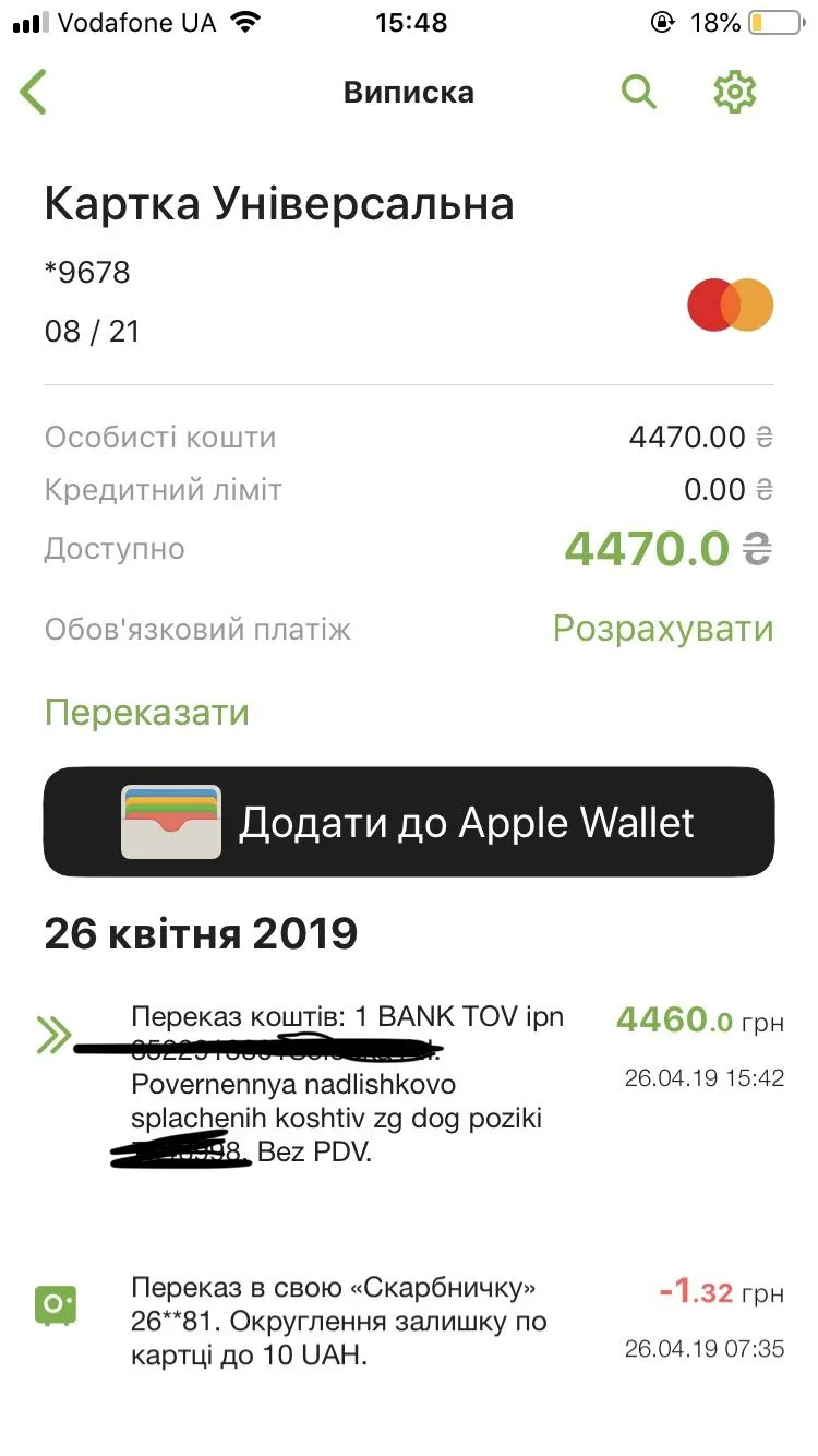 Та повернули кошти сьогодні