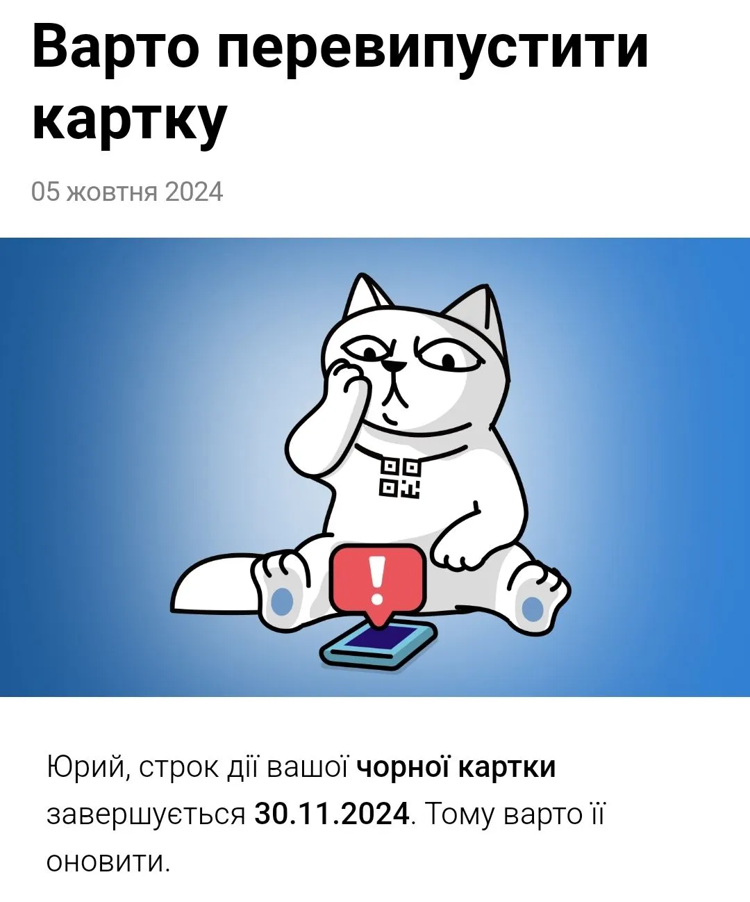 Заканчивается срок действия карты. Настойчиво предлагают обновить.