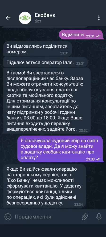 Сьогодні вийшла така ситуація: платила судовий збір онлайн. Оплата пройшла,а квитанція не сформувалась. Через підтримку зробила запрос на повторну відправку квитанції на емейл. 6 годин пройшло,а квитанції нема. Хто мав з таким справу? Може на вихідних не працює підтримка?