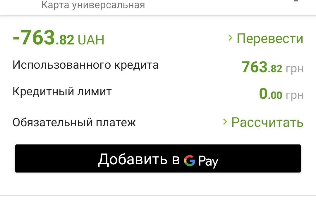 кредитный лимит 0,карта универсальная,сам приват мне его ограничил до 0,а списания происходят дальше