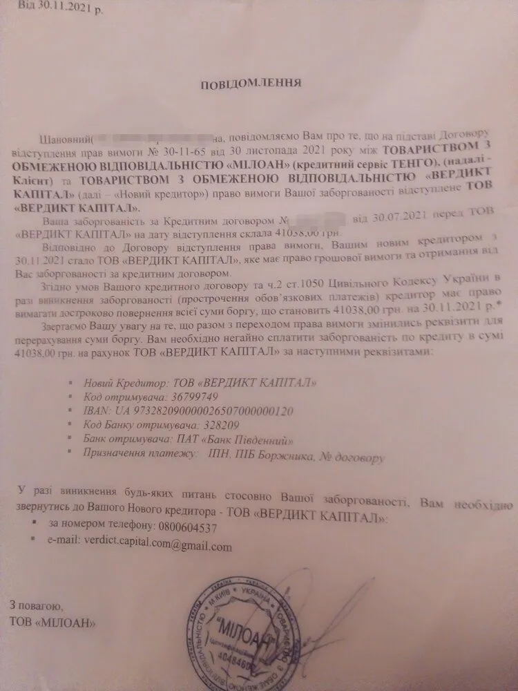 Так а яка різниця, хто продав? Суть то в новому кредиторі, як вони себе називають.Там нічого не пише що Тенго їм перепродає