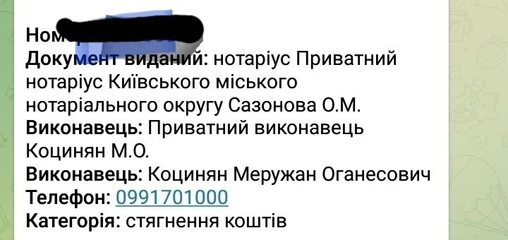 Нотариус Сазанова О. М., исполнитель Коциян М.О