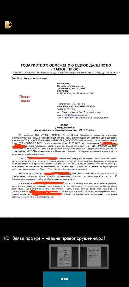Обратил внимание на "проект заяви" цвета крови. Это конечно больше на заметку ТС и нашим новеньким, кто пока на этих сочинителей ещё может вестись.