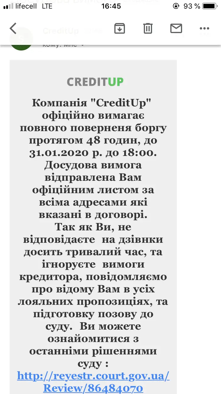 В мене так було з приватом. Був суд без мене ,навіть повідомлена не була..Прийшов лист рекомендований вже від виконавця. ....звернулася до адвоката ---олуха... Могли б знести напис...а так ... Оплатила з 3000---майже 30000--- 20% з заробітної плати..((((2,5роки(((Добрый день, такая ситуация, в 2016 был займ 2000, на сегодня они подали заочно в суд(о котором я не был уведомлен) и выиграли 67000, предлагают закрыть за 20000, предлагаю 10000, отказываются. Кто что посоветует?