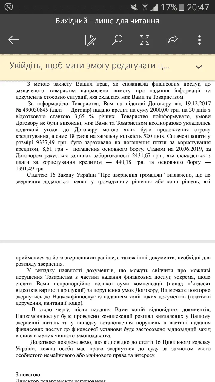 Значит вы им тело кредита должны и всё.Это по какому МФО пришло?Не кредит 365 случайно?мне сегодня пришло что должны друг другу вернуть то, что взяли, хотя я взяла и не пролонгировала