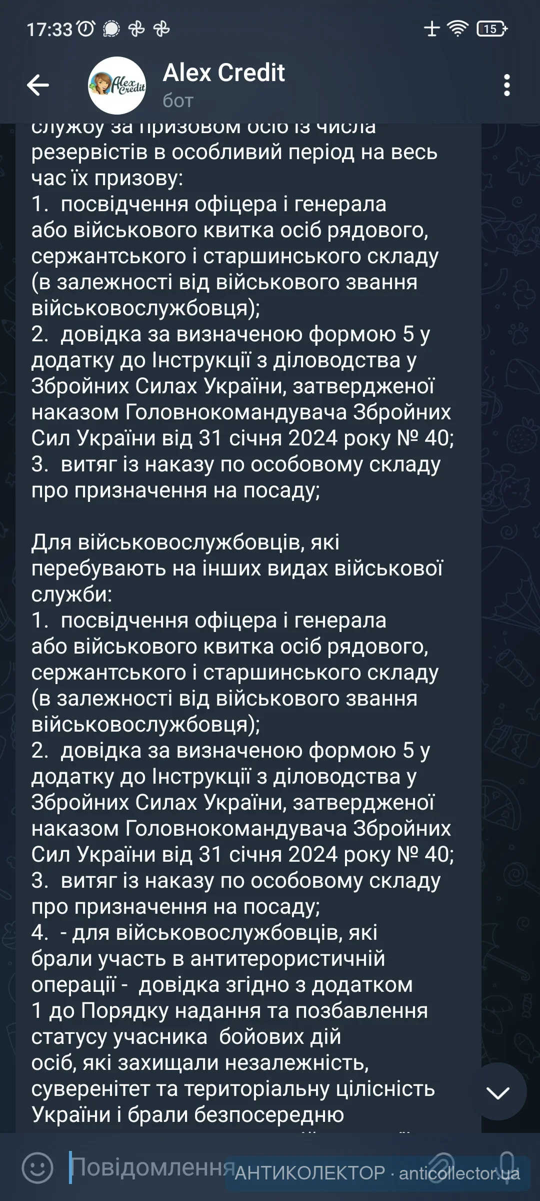 В мене залишились тільки BeeCredit та AlexCredit. Обидва відмовляються приймати форму 5 і вимагають саме витяг (завіреної копії) із наказу по особовому складу про призначення на посаду. Його отримати проблематично. Хтось стикався вже з цим, може знає де і як його отримати і чи правомірно вони вимагають цей витяг якщо військовий квиток і ф5 я вже надав?