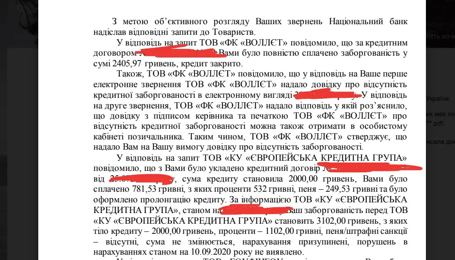 Просрочке больше года, месяц назад написал в НБУ (подавал через сайт Урядової). Результат на скрине. Это уже не первый ответ НБУ, отвечают они очень подробно и похоже действительно нагибают чмошников. В обращении просил проверить правомочность таких требований. Вот теперь думаю, не подать ли еще одну жалобу)