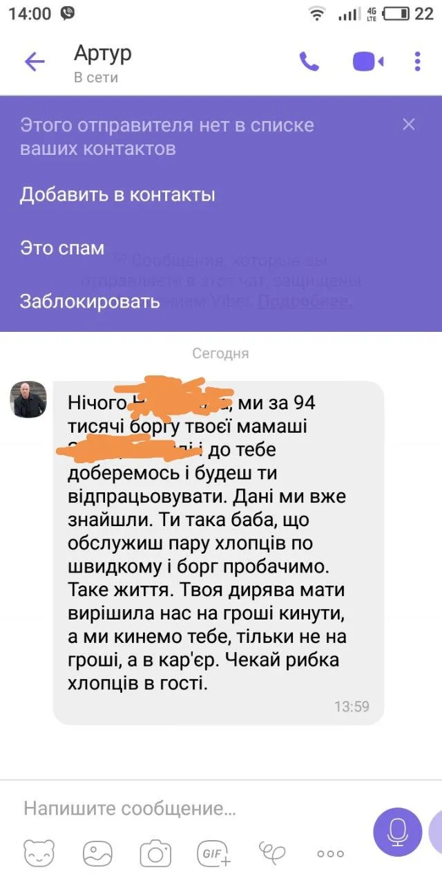 Вот в моем случае пробуют зайти с другой сторони. Но финфорс сразу идет с другой сторони-мне не звонили ни разу а сразу родственникам с угрозами начали. Племяннику сказали что деньги Я брала на его лечение есть записи просто не буду викладивать мое фио звучтюит. Мои родственники (кроме мами) уже разговори пишут...