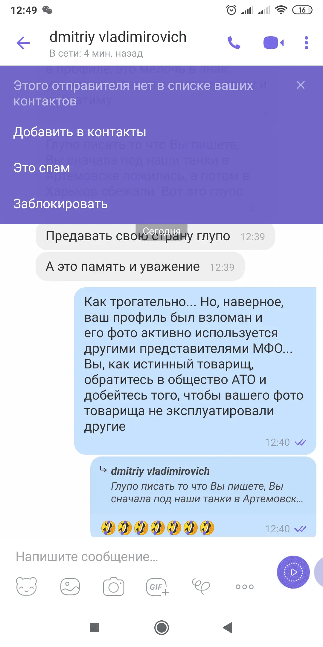 По поводу бумеранга і всього йому сопутствующого я з Вами згідна на всі 1000% , знаєте, а прилітає то ще в основному не тільки на них, а й на дітей,внуків і т.д., розплачуватися то за наші сльози івсе те, що ці скоти творять вони будуть....Ну,это фото много кто с калососов ставит себе на аву в вайбере,а по факту этот мужчина погиб в АТО,вроде бы так...нашли все его данные в Гугле по фото,как тут и писали выше! Пи*арасы они конченные - это факт!? потом им в жизни прилетит, а они своим скудным умишком даже не поймут за что им столько говнеца? бумеранг ещё никто не отменял?☝