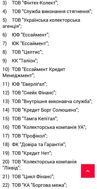 Та хоч3000 всеодно поx.не боюся жодноїСписок офіційно зареєстрованих колекторський компаній.