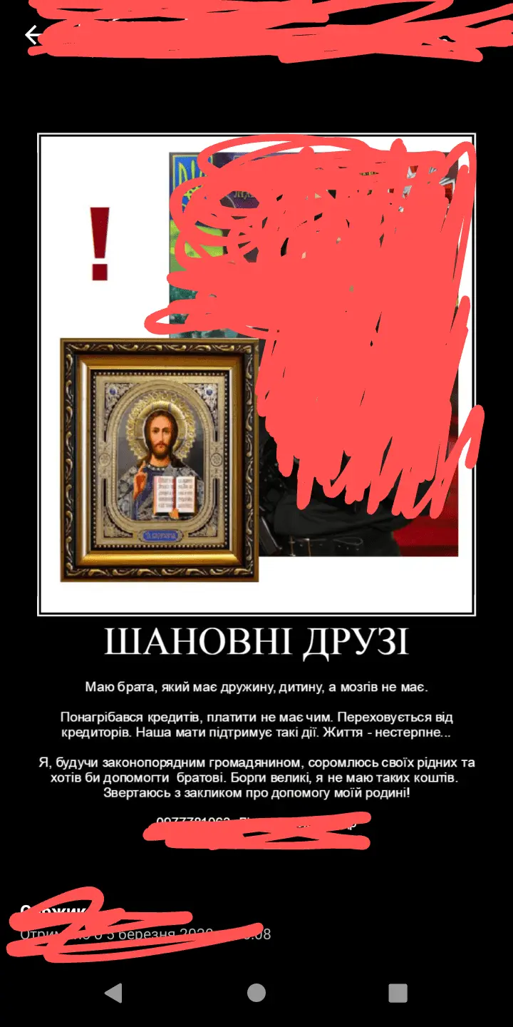 Бистрозайм прислали колаж на брата,він рве і мечем.Спочатку пришла мені смс такого характеру а десь через пів годинки брату на вайберScreenshot_20200305-154527~2.png .І шо ви робить цім твapюкfм