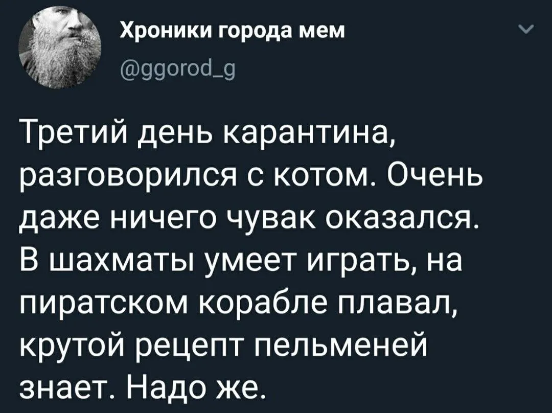 Хай ходит, абы дурную кампанию домой не вел, типа Воландов и Коровьевых- пособников распространителя вируса, гуляют, блин, призраки всякие, пандемию разносют)))))
