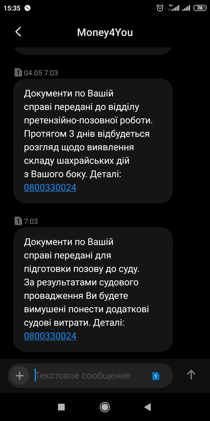 У меня money4you тоже при просрочке пропали. Теперь же, когда почти месяц просрочки, присылают смс. Грозятся судом.Matilda82, в мене кредит каса, мілоан і маніфою,дзвонять, каса більше всіх,маніфою десь ділися, мілоан прислали,що будуть продавати,2 міс просрочки з хвостиком