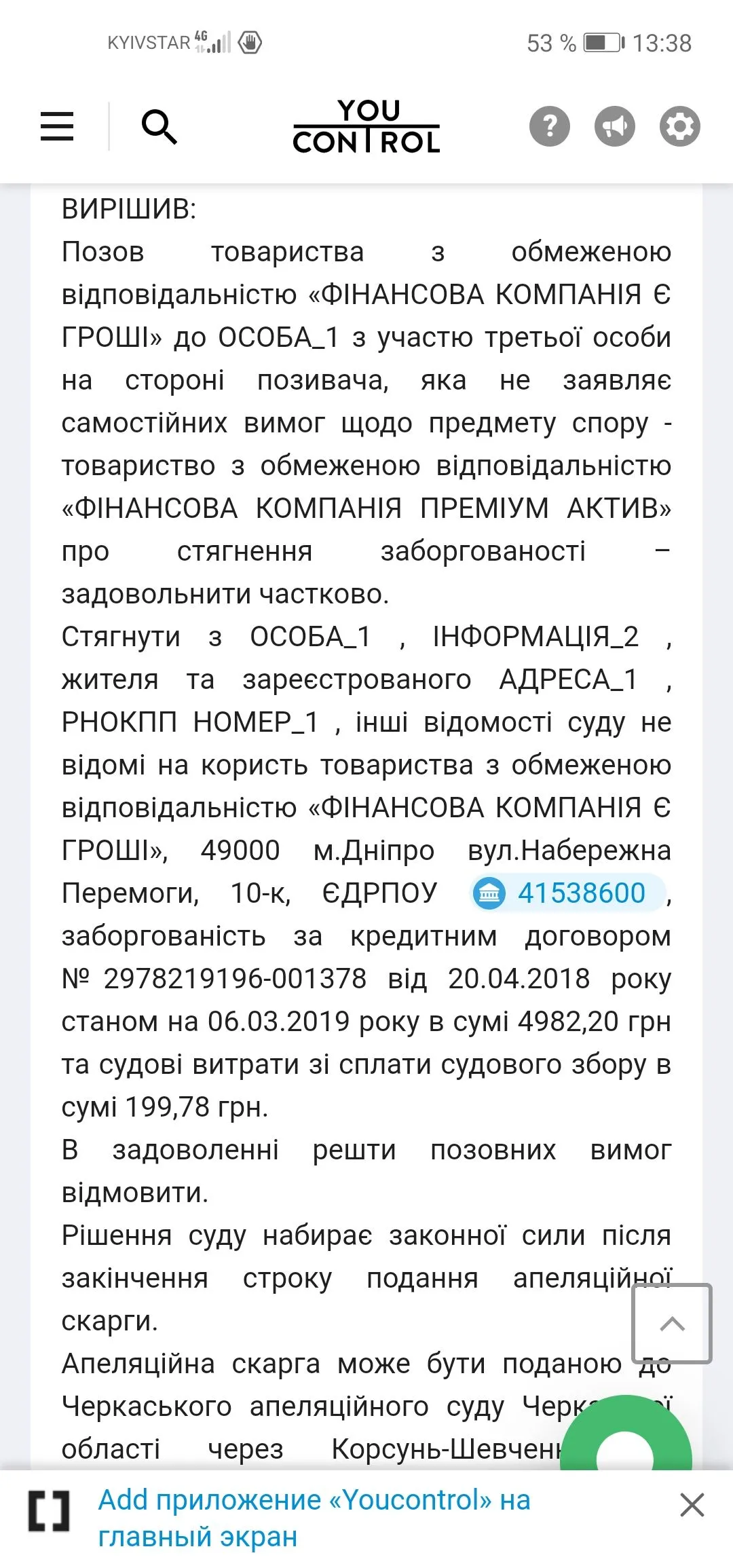 Вот это судебное решение е гроши. Они подаю в суд. Но если продаёшь апиляцию они в суд не являтся