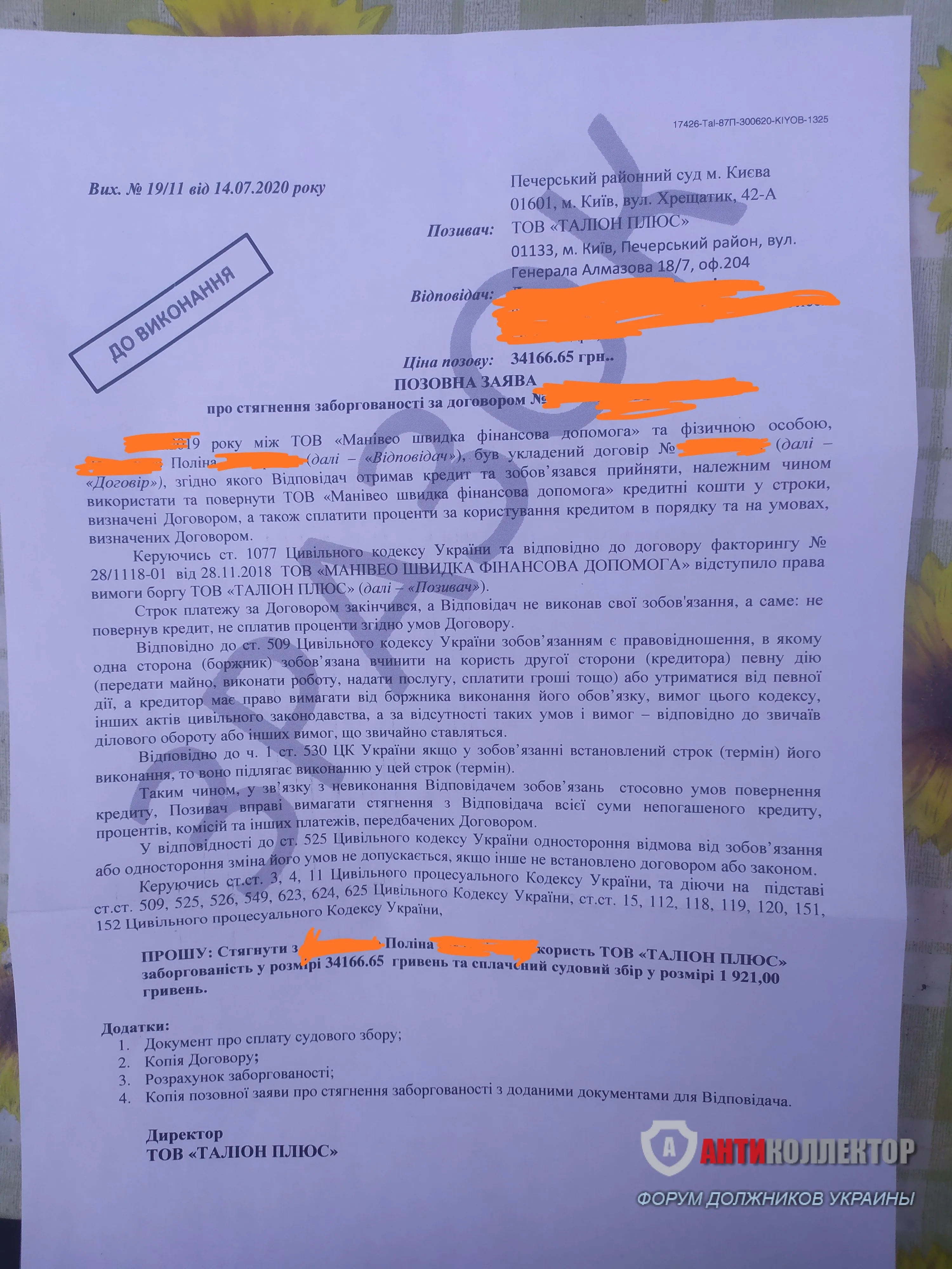 Ось такий лист з вмістом із трьох аркушів прийшов пару днів тому. Зрозуміло, що нічого не зрозуміло, але мною тепер займеться таліон. Але пофіг?