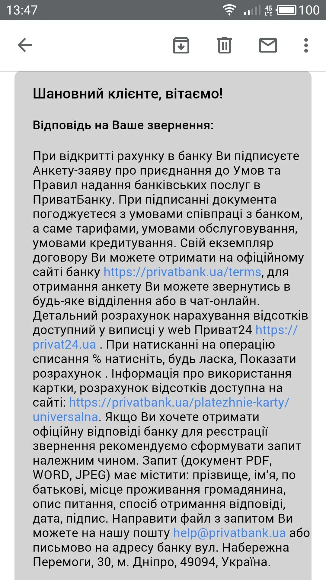 Я в бешенстве написала жалобу на 1545, ее направили сращу на нбу и нацполицию. И вот сегодня пришел ответ от нбу, довольно неплохой.