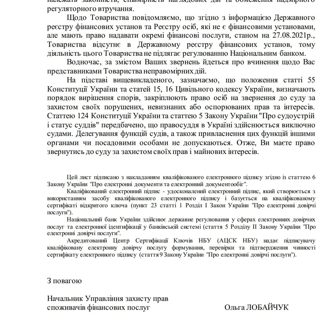 Ситуации с данной шарагой,купили зафиксированный недооплаченный долг в компании кумо,начислили дополнительные проценты,противоречащие договору и законодательству Украины.Решил написать жалобу в НБУ.Подскажите по ответу,почему НБУ ответил,что нет лицензии у них?Как это понимать?Может просто реестр ещё не создали по калам?Или шарага эта работает не легально?Я в замешательстве,где проверить по ЭДРПО список лицензий в Украине?Блин,и обрадовался ответу и огорчился.Плюс,что лицензии якобы нет,минус,что я надеялся сумму корректную выставят к оплате,зафиксированную.