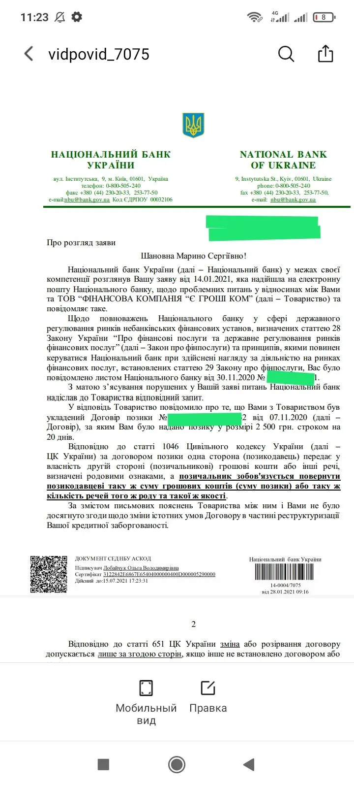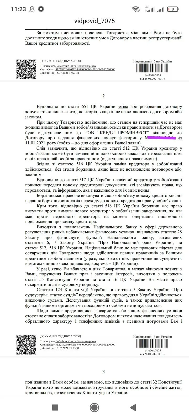 Кто нибудь объясните, что означает письмо. То что є гроші ко мне не имеют претензий и я им не должна ничего да? А с этими кредитпроминвест что?! Мне они никаких договоров не высылали. Чтоб я была уверена что не должна этой фирме могу с ним потребовать документ что займ закрыт?