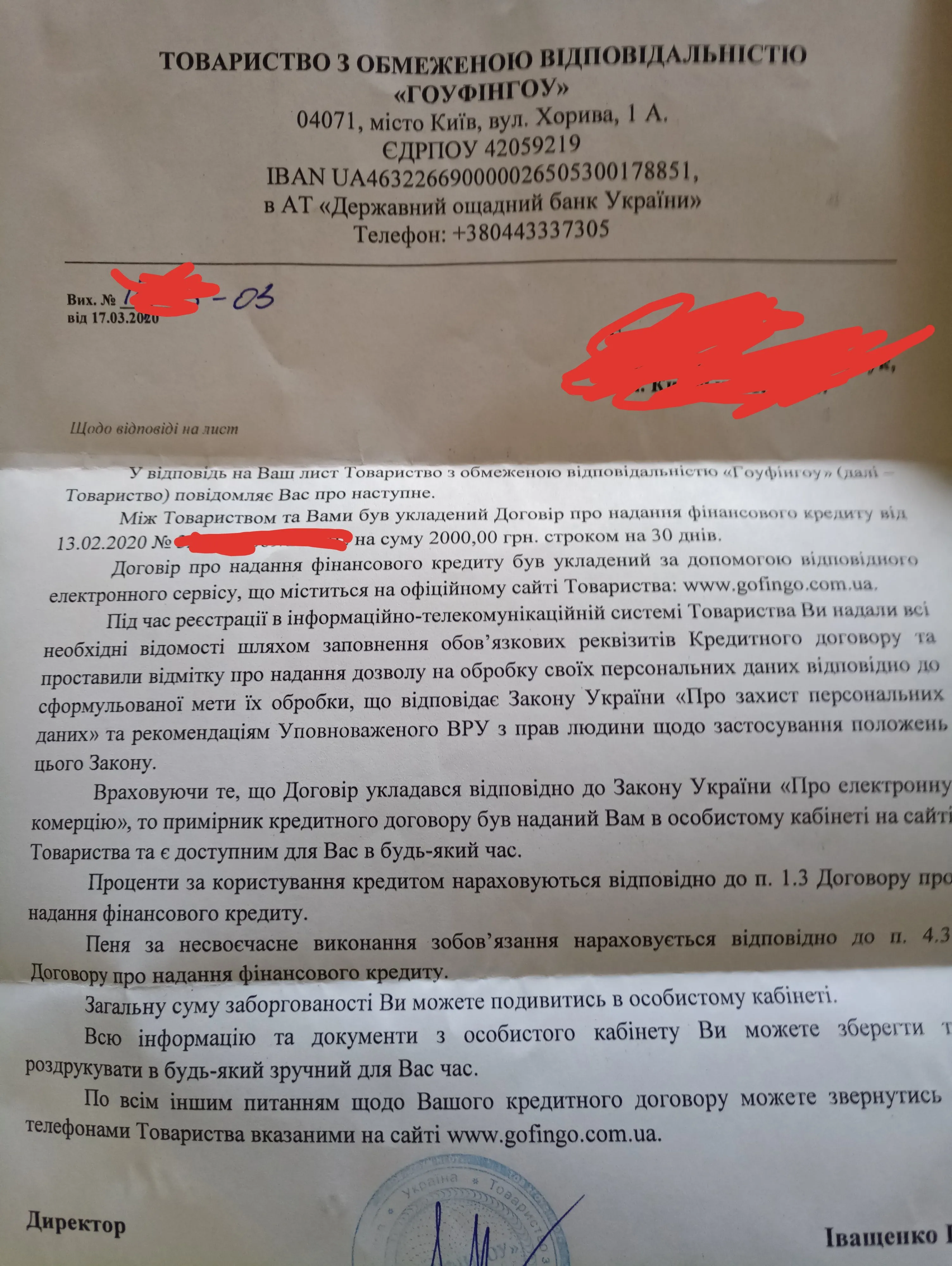 ответ от гоуфинго на мой запрос о реструктиризации