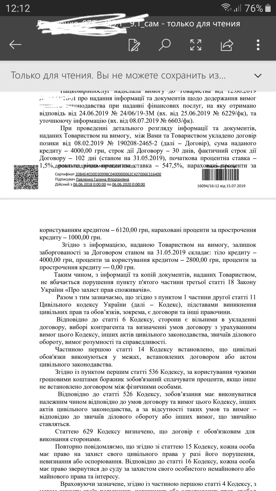 мені по кредит касі тоже таке прийшло, що порушень не маєНарахування відсотків законне абсолютно ( якби вони вам впаяли штрафи, пеню, то тоді б списали, а поки рахують тільки відсотки - то все в межах закону, нажаль ( так в мене на Укр кредит фінанс